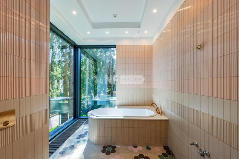 Новый современный дом 1015 кв.м "под ключ" с мебелью, расположенный в тихой части поселка рядом с центральным озером и прогулочной зоной. Отделка дома выполнялась из высококачественных современных материалов, инженерные системы включают в себя: приточно-вытяжную вентиляцию с увлажнением и системой кондиционирования воздуха, электро приводы штор, мультирум и Wi-Fi, в доме установлены деревянные стеклопакеты, отделка фасада из натурального камня и лиственницы.