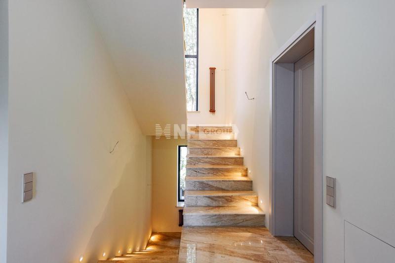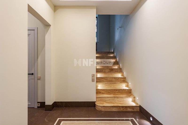 Всего в 15 минутах езды от Москва-Сити расположена новая современная резиденция, площадью 511 м2. Прямой и быстрый выезд на платную дорогу М1 обеспечивает безупречную транспортную доступность. Участок расположен на самой высокой точке поселка в окружении лесного массива. В отделке и строительстве применяются исключительно решения с максимальным жизненным циклом. Архитектура с панорамным остеклением SCHUCO, комбинацией натурального гранита с термодеревом на фасаде и архитектурной подсветкой. Инженерное оснащение включает климатическую систему DAIKIN "всё в одном" с приточно-вытяжной вентиляцией, кондиционированием скрытого монтажа и премиальным котлом. Внутренние помещения находятся на высокой стадии готовности: керамогранит с тройной фактурой на первом уровне, подготовка под паркет COSWICK MOSAIC в спальнях, полностью готовая каминная зона и санузлы. Установлены 8-метровая входная дверь PILOT, сантехника Villeroy & Boch и система "умный дом". Инфраструктура дополнена теплыми полами, подогревом уличных зон и готовым гаражом. В доме предусмотрена мастер-спальня с выходом на зеленую террасу с туями, спальня с двумя балконами, выход из кухни на крытую террасу для барбекю, второй свет с техническим освещением от ЦЕНТРСВЕТ.