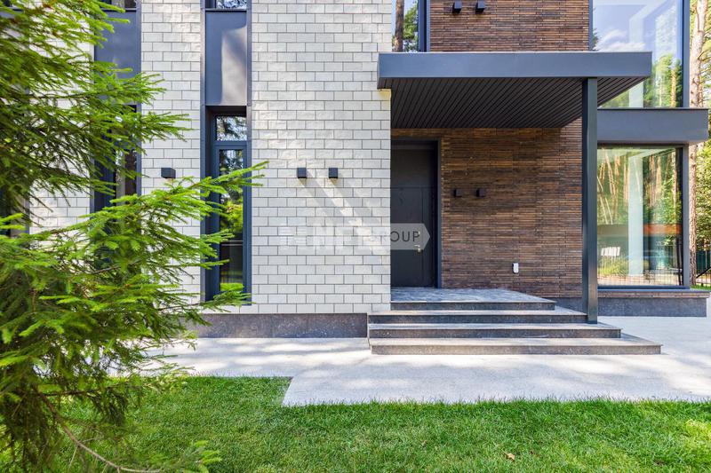Угловой трехэтажный таунхаус "под ключ" на просторном участке 5 соток в КП "Парк Авеню". Современная архитектурная концепция. Фасад облицован натуральным камнем и деревом. Большие панорамные окна ориентированы на три стороны. Во внутренней отделке - исключительно премиальные материалы, дорогая мебель, встроенная бытовая техника, сантехника.