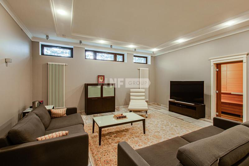 Стильный деревянный дом Honka на лесном участке в охраняемом коттеджном поселке. Дом выполнен на 40% из натурального дерева и на 60% из кирпича. В интерьере гармонично сочетаются уют, создаваемый деревом и стильный минимализм современной мебели от ведущих мировых производителей. Освещение в доме выставлено Ingo Maurer, которого не зря называют «поэтом света» — теплый естественный свет подчеркивает все достоинства материалов, включая их высокое качество. В отделке дома также преобладает авторский текстиль и уникальная мебель от брендов Donghia, Bellavista, Poliform. Мебель на кухне выполнена немецкой компанией SieMatic, а за бытовую технику отвечают Miele и Gaggenau. Сантехника от ведущих мировых производителей Antonio Lupi и Dornbracht. Сауна от немецкого бренда Klafs. Дом расположен в поселке «Горки-1», на территории которого обустроена парковая зона площадью 9 гектар и собственная развитая инфраструктура. В поселке действует спортивно-ресторанный комплекс, на территории которого расположен бассейн с водопадом, теннисный корт, сауна, тренажерный зал и ресторан.